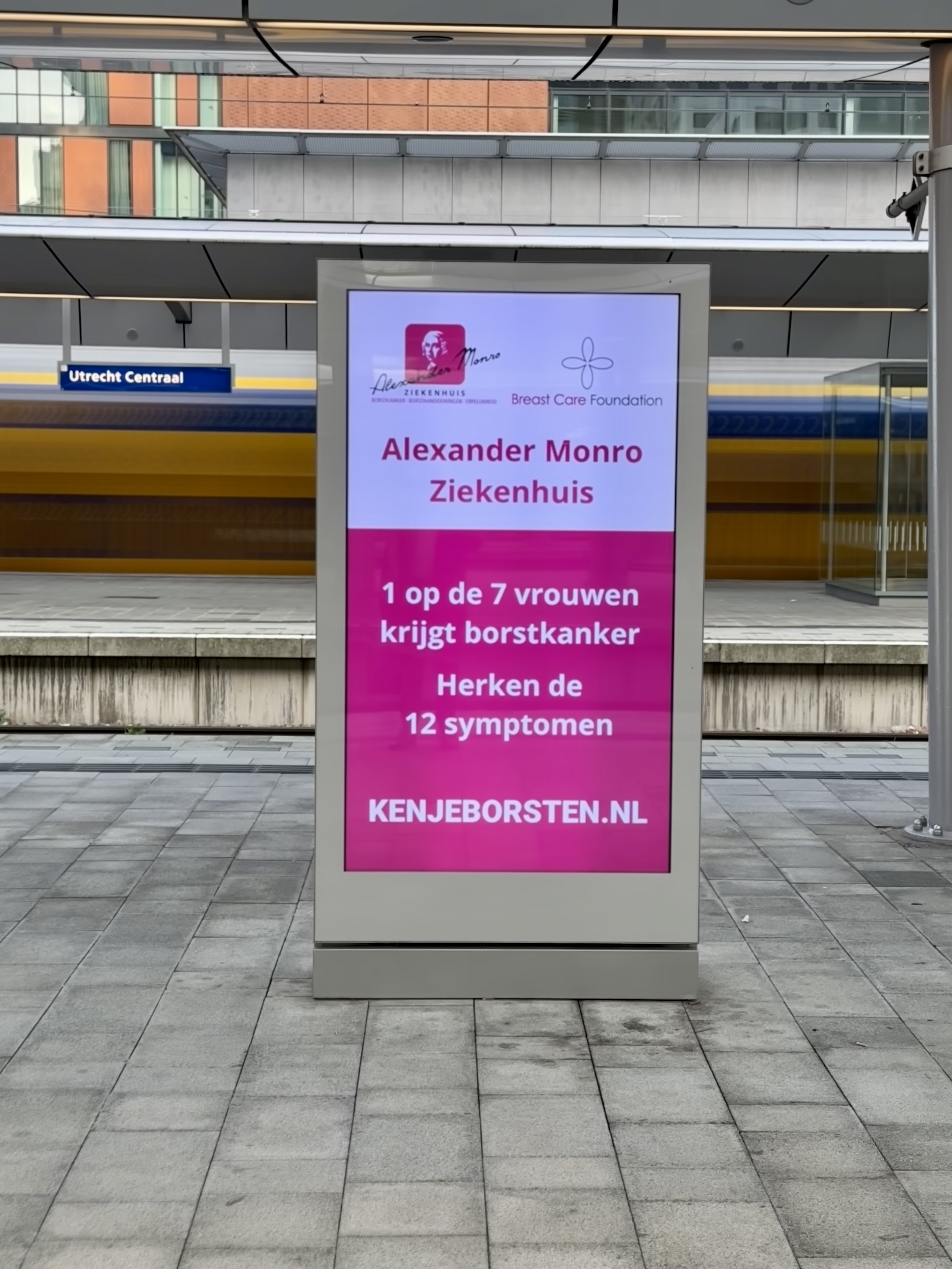 Voor een campagne als KEN JE BORSTEN is zichtbaarheid geen doel op zich, maar een middel. Digitale buitenreclame maakt het mogelijk om de boodschap te tonen op momenten en plekken waar mensen onderweg zijn en openstaan voor informatie.